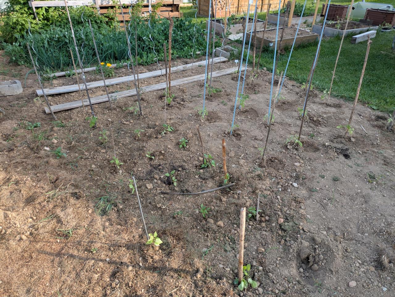 Super! Schaut nach einem tollen Nutzgarten aus! 👏 Ich zwicke mir dafür vom Murielen-Bambus ein paar langen Halme ab. |