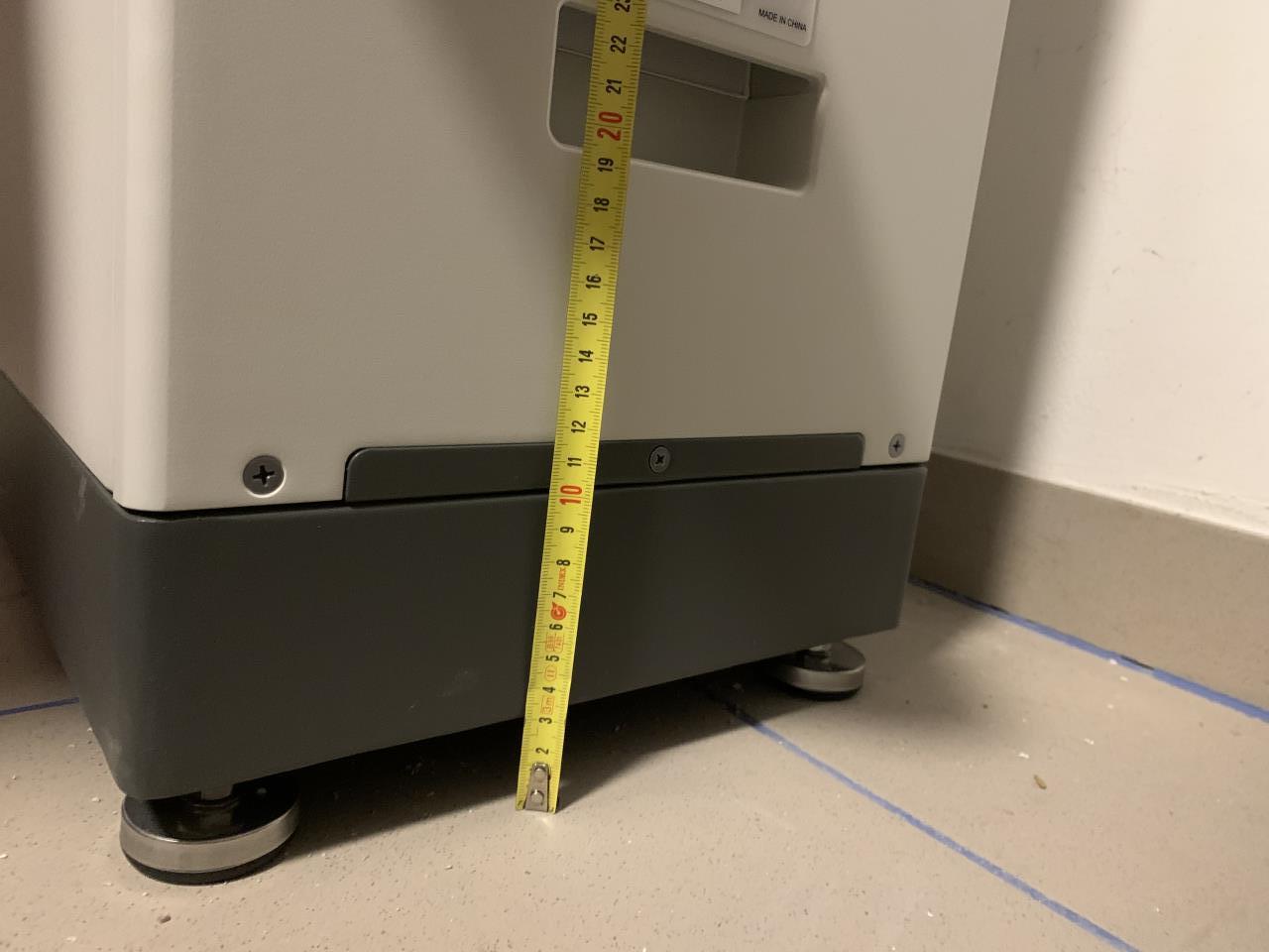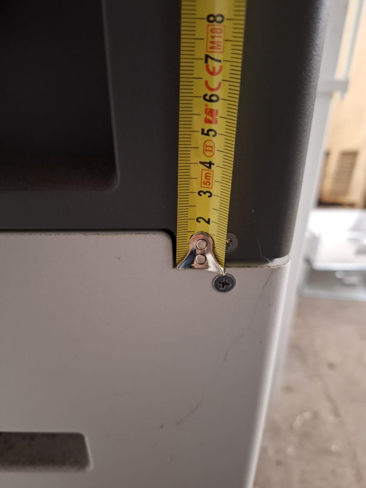 Hab jetzt kein genaues Maß denke aber es sind in etwa 3cm. Ein bisschen Spielraum hast vielleicht auch mit den einstellbaren Füßen. |