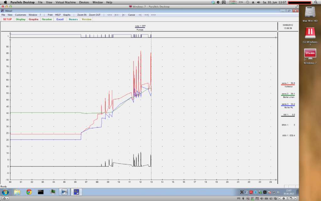 Ich würd mir auch Statistiken wie jene von Dandjo erwarten..bei dem Wetter und Sonnenschein müsst ich normalerweise meine 2 Nachbarn auch noch mit WW WW [Warmwasser] versorgen können... Anyway. Die Kollektortemperatur scheint schon halbwegs plausibel zu sein. Die beiden Kollektoren sind waagrecht liegend nebeneinander montiert, der Temp. Fühler ist oben rechts beim ersten Kollekor im Bereich des Vorlaufes. Ich hab meinen Boiler und VL VL [Vorlauf] und RL RL [Rücklauf] im Keller mit zusätzlichen Temp. Sensoren versehen... |