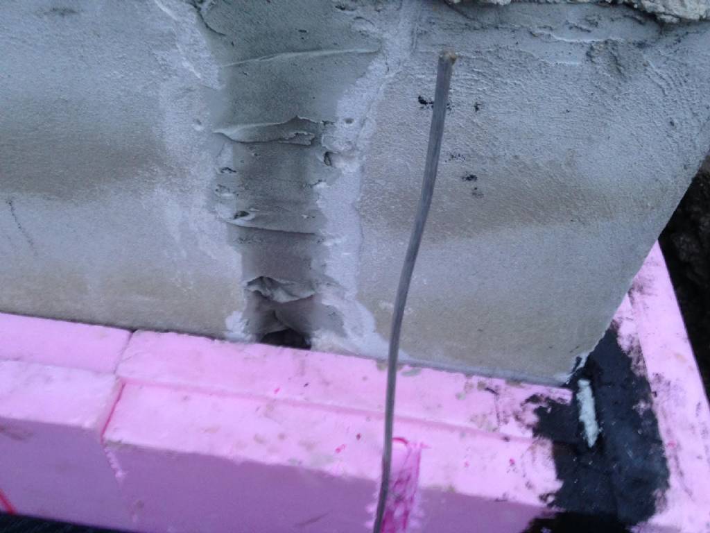 Auf dem Bild sieht man schön wie versucht wird, eine gerade Flucht herzustellen. Allerdings fehlt meines Erachtens die schlüssige Verbindung zur Wand. Wenn da Perimeterklebeschaum reingedrückt wird, dann ist das doch auch nur halbherzig oder? Hier sieht man schön den Schlitz der von der alten Hauptzuleitung übrig geblieben ist. Da wurde scheinbar auch nicht der ganze Schlitz "geschlossen", sondern nur oberhalb der XPS-Platten... Das ist doch auch nicht förderlich oder ist das egal? Ist es normal, das der "Blitzschutz" bzw. Ringerder in der Dämmung nach oben geführt wird oder haben wir da auch wieder mal eine besonders kreative Lösung??? |