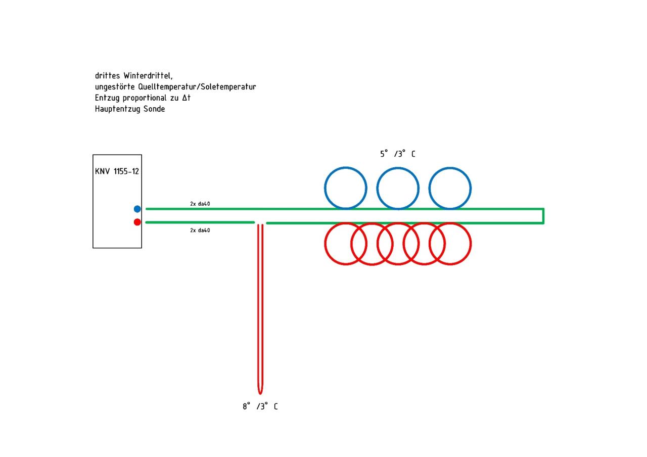 stichwort sanierungen... wir machen sehr sehr sehr viele sanierungen mit erdwärme. hätte ich mir vor ein paar jahren nie träumen lassen... gerade bei großen bestandsobjekten mit hohem wärmebedarf wirkt sich der effizienzvorteil von erdwärme deutlich aus, speziell wenn im bestand radiatoren betrieben werden. wir haben dazu unterschiedlichste konzepte im einsatz, sanierung ist immer individuell. gerade habe ich wieder ich 3 hybridquellen aus RGK RGK [Ringgrabenkollektor] & TB am tisch. beide systeme profitieren dabei voneinander, das ganze ist mehr als die summe der einzelteile... hier eine grafische darstellung wie sich der entzug nach dem delta-t sole/erdreich per selbstregeleffekt über den winterverlauf gleitend verteilt...