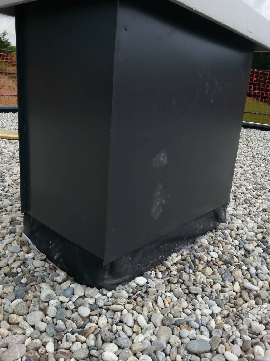 Da wir schon einiges an Problemen mit unserem Dachdecker (Subfirma des Fertighausherstellers - sonst hät ich ihn eh schon am zweiten Tag verjagt!)hatten, frag ich mal lieber euch, ob die Verblechung unseres Kamins auf dem Flachdach wirklich richtig ausgeführt wurde. Wie auf dem Foto ersichtlich, reicht die Verblechung nicht bis ganz hinunter und ca. 10 cm der EPDM Folie liegen noch frei. Laut Dachdecker ist das so in Ordnung. Mir kommt es eigenartig vor, jedoch finde ich keine Vorschriften.