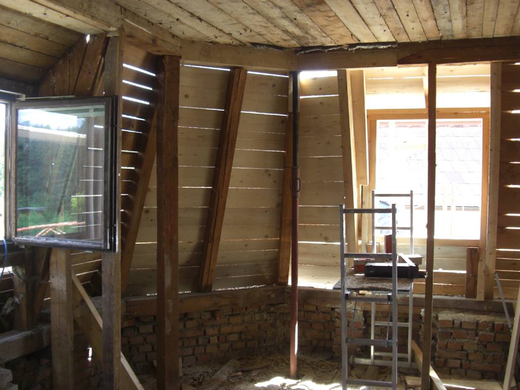 ja habe ich zum glück es ist zum Glück nur der teil in der Mauer. Freiliegender Dachstuhl, Pfetten & Sparren schauen gut aus. Zimmermann hat eh schon einiges ausgebessert. Vermute mal das es beim Fenster wassereintritt in die Fassade gegeben hat... |