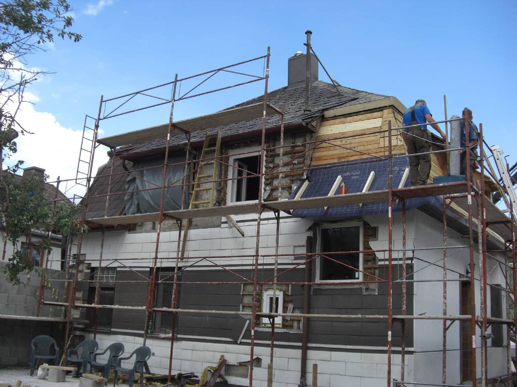 Im Bereich der Gauben wurde auf ein Mauerwerk gewechselt, aber der Ringanker unterhalb durchgezogen. Den solltest unbedingt ersetzen, evtl das morsche Holz raustrennen, ausbetonieren inkl Gewindesteangen und überm Beton den Anker wieder schließen! ng bautech |