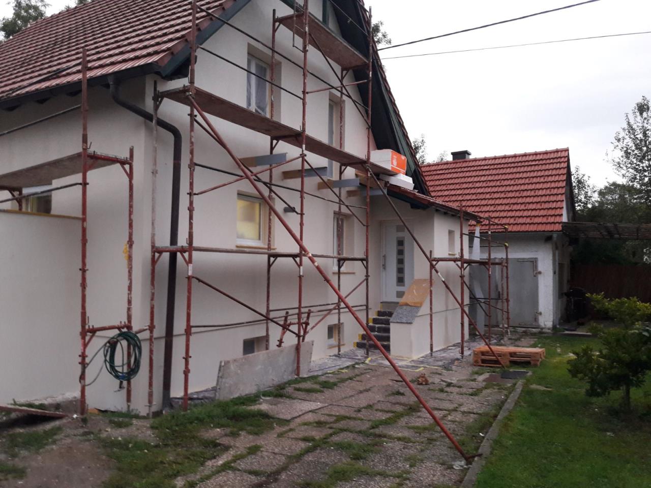 genau seh ich auch so ... ich würde daher z.b. nicht in der haushälfte horizontal teilen. ich würde das Nebengebäude (Garage?) und den zubau (eingang) in der dunklen farbe, das haus hell und zwischen den fenstern vertikal einen breiten dunklen streifen. aber... eben geschmacksache |