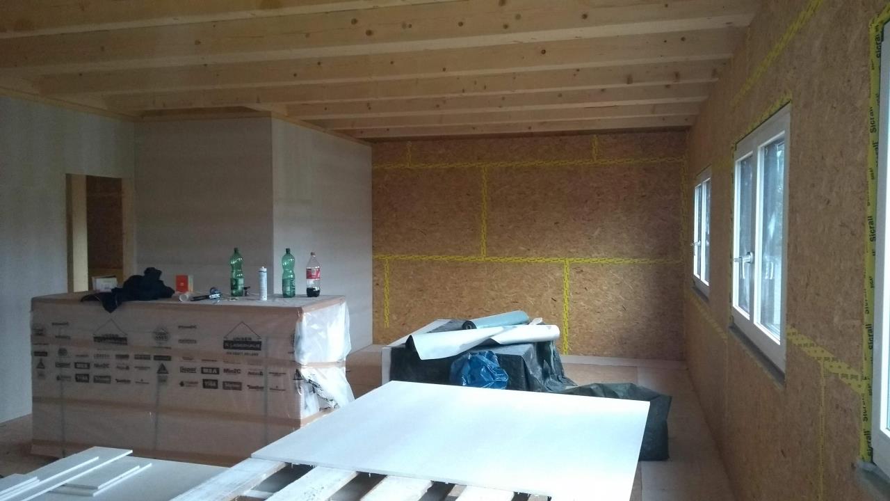 Die Holzweichfaserplatten verbauen wir dann teilweise innen.