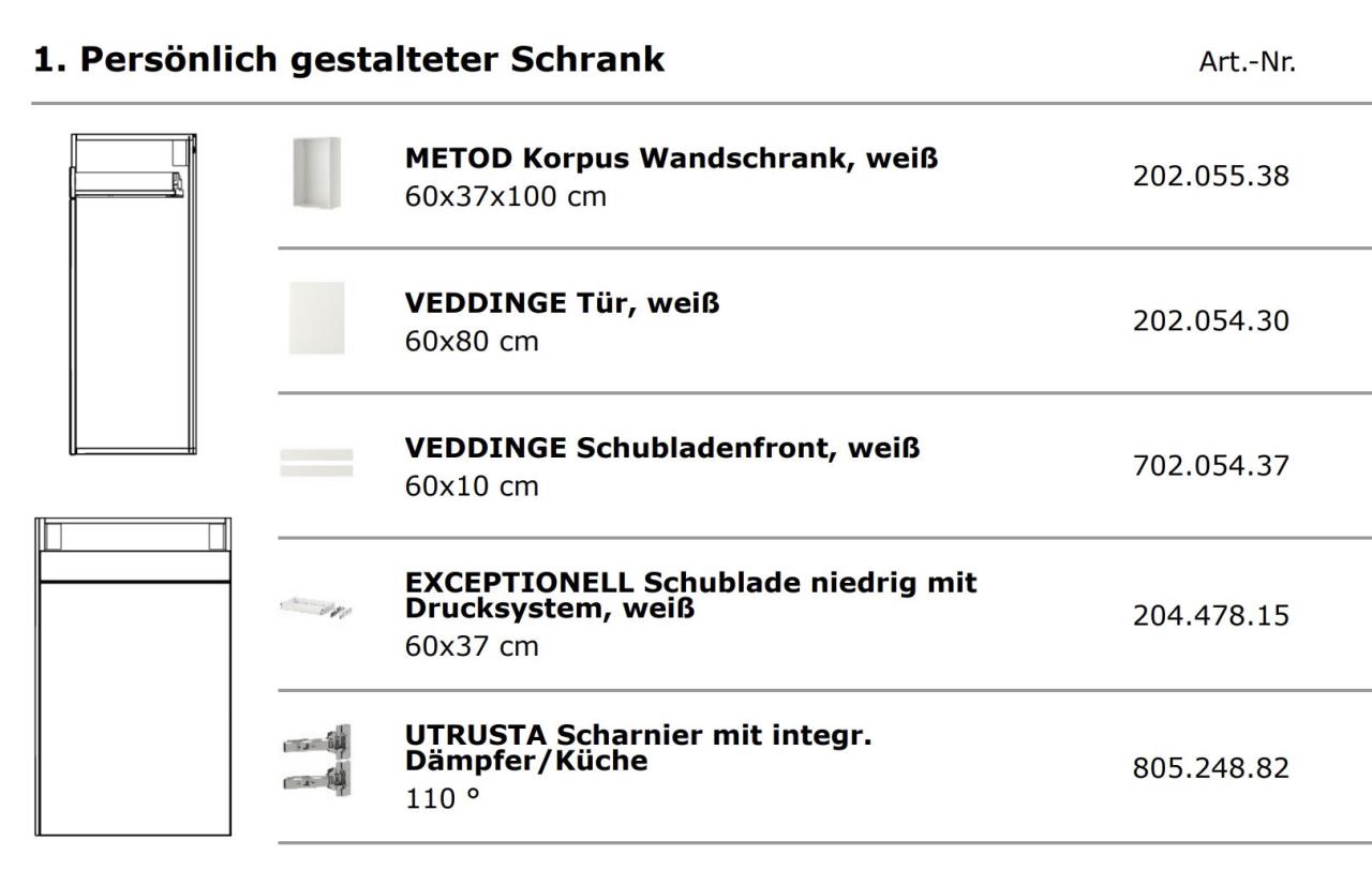 Mit 40er Tiefe gibt es keinen fertigen Schubladenschrank ausser der Maximera. Der hat aber die Schubladen unten (Hängeschrank). Deswegen muss man das im Planer separat planen aber sieht dann komisch aus weil er nur eine Schublade anzeigt. 2 gehen sich nicht aus also einfach eine verbauen auf der richtigen Höhe + die höhere Blende dazu. In der Stückliste übernimmt er nur die schmale Front. Hab die dann zurückgegeben und mir die hohe geholt damits passt. Sieht dann fertiger so aus mit 2 nebeneinander.