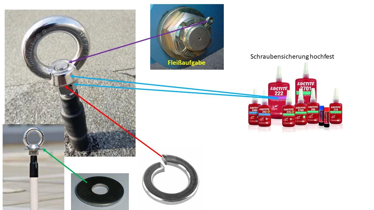 Hallo liebe Experten, da es jetzt aktuell wird, habe ich das GEwinde mal gemessen. 1cm genau (außen). Ist das M10 oder? Danke! dieses Schraubensicherungsspray muss ich dann wohl auch kaufen. also von unten nach oben 1. Mutter 2. Beilagscheibe 3. Federring 4. Gegenöse und Schraubensicherungsspray sowohl unter Mutter also auch Gegenöse? Noch ne Frage - wo könnte man sich ein Absturzsicherungsseil/riemen ausborgen? |