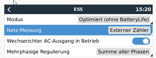 da braucht es entweder zusätzlich einen SE Zähler oder den Elgris Zähler, der hat Victron und SE Funktionen in einem Gerät kombiniert,