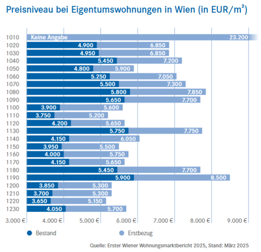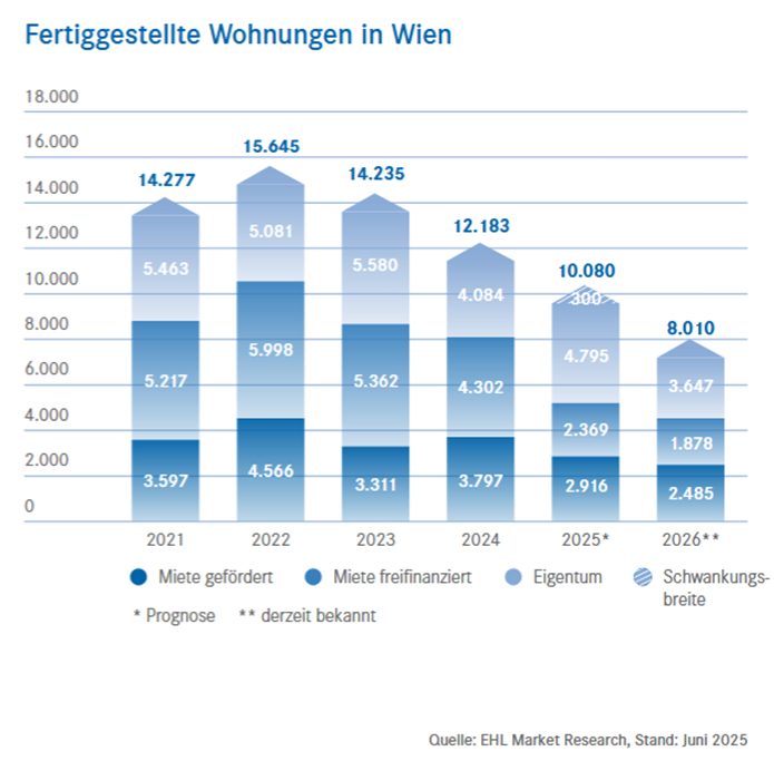 Für den Wiener Wohnungsmarkt anbei die aktuellen Daten aus dem Marktupdate des 1. Halbjahres 2025 (Quelle: EHL) |