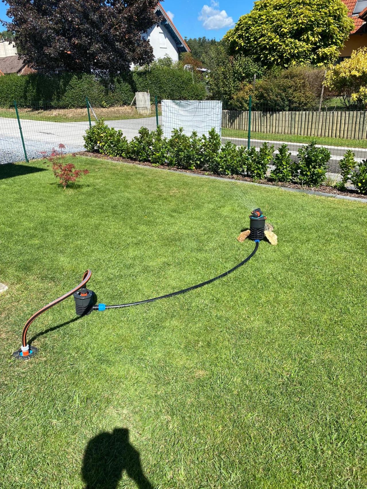 Hallo, bei mir ist es ähnlich! Ich habe auch so einen Grundwasserschacht wo ich im Sommer "fast" endlos Wasser habe (nach 1h ist das Becken wieder voll). Ich habe in dem Schacht eine Einhell Pumpe stehen, hat ca. 250€ gekostet, die steht direkt auf einer kleinen Waschbetonplatte. Von dieser Pumpe gehen jeweils 2 3/4 Zoll Leitungen zu 2 Gardena Wassersteckdosen die im Garten verteilt sind womit ich alles abdecke. Jede Leitung ist ungefähr 12m lang. Neben den Wassersteckdosen habe ich Verteilerdosen für die fix verbauten Rasensprenger (jeweils 2 Stk pro Kreis). 2 Sprenger haben ausreichend Druck, wenn ich alle 4 gleichzeitig anschließe ist zu wenig Druck um die ganze Rasenfläche zu bewässern. Am Strom hängt das ganze mit eigener Wifi-Sicherung. Somit kann ich mit Handy die Bewässerung starten und Zeitpläne erstellen etc. Habe mir vor kurzem auch ein Magnetventil von Rainpoint gekauft damit ich sogar die 2 Kreise mit Handy aktivieren kann welcher "scharf" sein soll. Somit kann ich jeweils die 2 Sprenger starten die ich möchte. Ist zwar keine Profi-Lösung aber hat sich beim Hausbauen so ergeben und muss sagen das ganze funktioniert echt gut und war von den Kosten überschaubar. LG |
