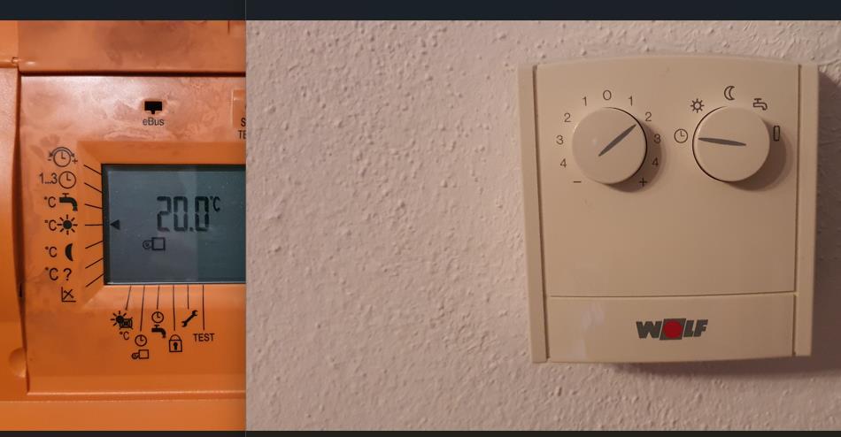 Innentermostat auf 0 umgestellt - somit teste ich mit 20° C Innentemperatur weiter und müsste es dann 1:1 zum Diagramm der Heizkurve passen .... |