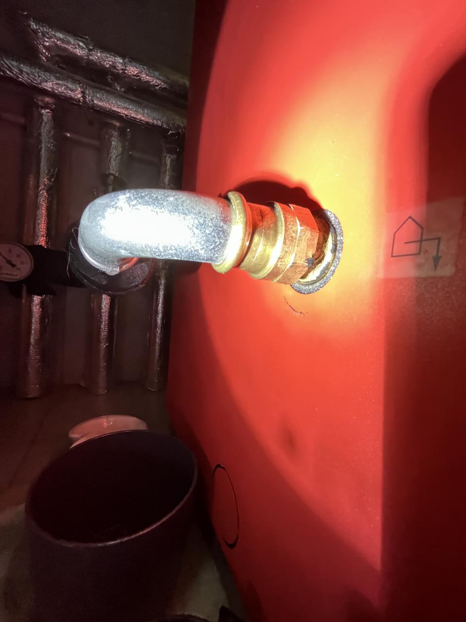 Also Isolierung runter, Stelle suchen, vermutlich ein flachdichtender Flansch.