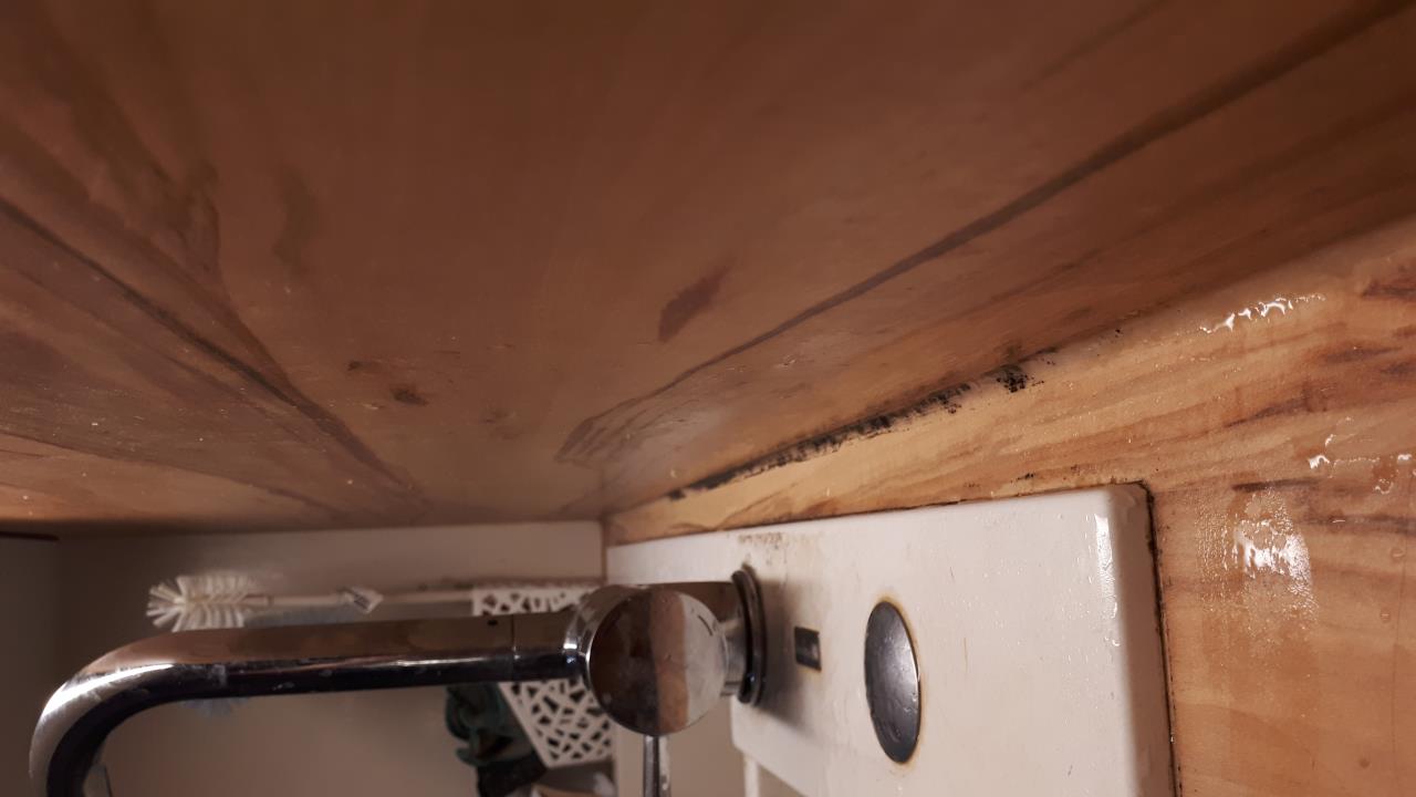 Hier ein Foto von seitlich. Wie es aussieht wär mir ziemlich egal, alles ist besser als der Schimmel. Ließe sich eventuell Vinyl draufkleben? (Solche Bretter, die als wasserfester Vinylboden verkauft werden.) |