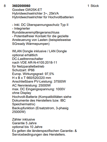 Ja die 1k je kWp kWp [kWpeak, Spitzenleistung] peile ich auch an, wenn man den Speicher abzieht kommt man da eh gut hin, aber wenn bei der Leitung der zu kleine Querschnitt angeboten wird zweifle ich schon an der Seriösität, muss ich rund um St. Pölten noch bissl suchen 😅