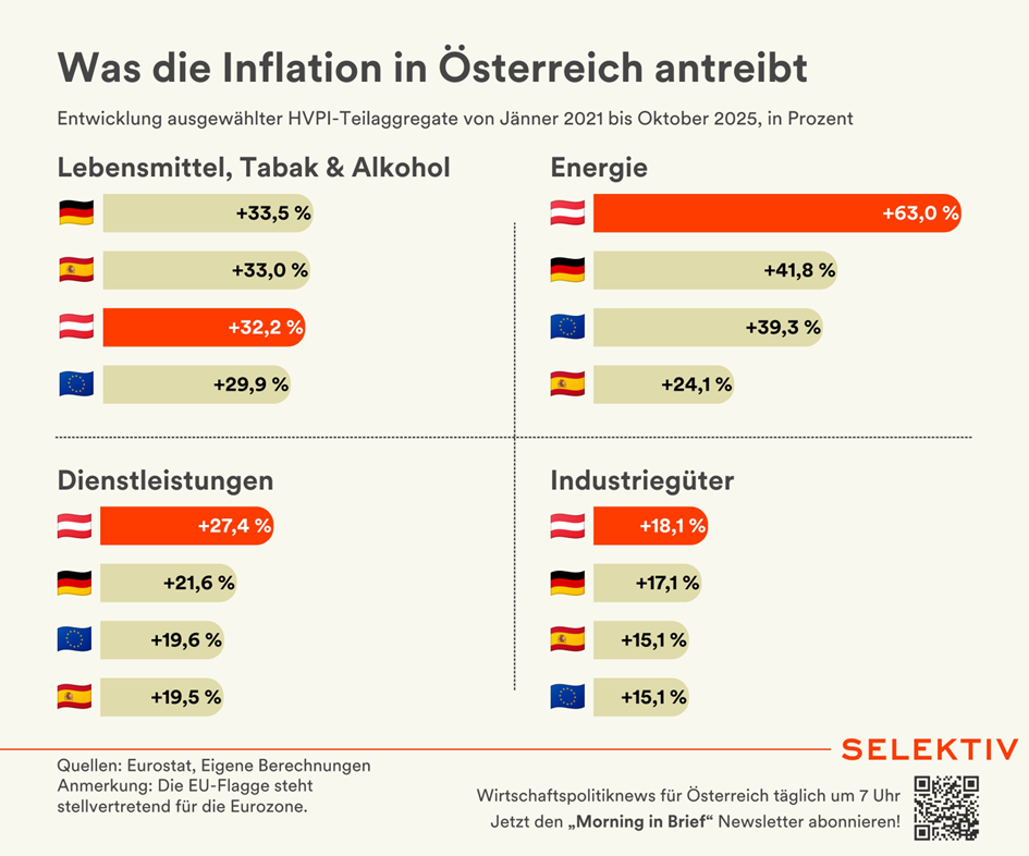 Wieso ist die Inflation in Österreich mit 4,1% im November im Vergleich zur EU mit 2,1% um so viel höher? |