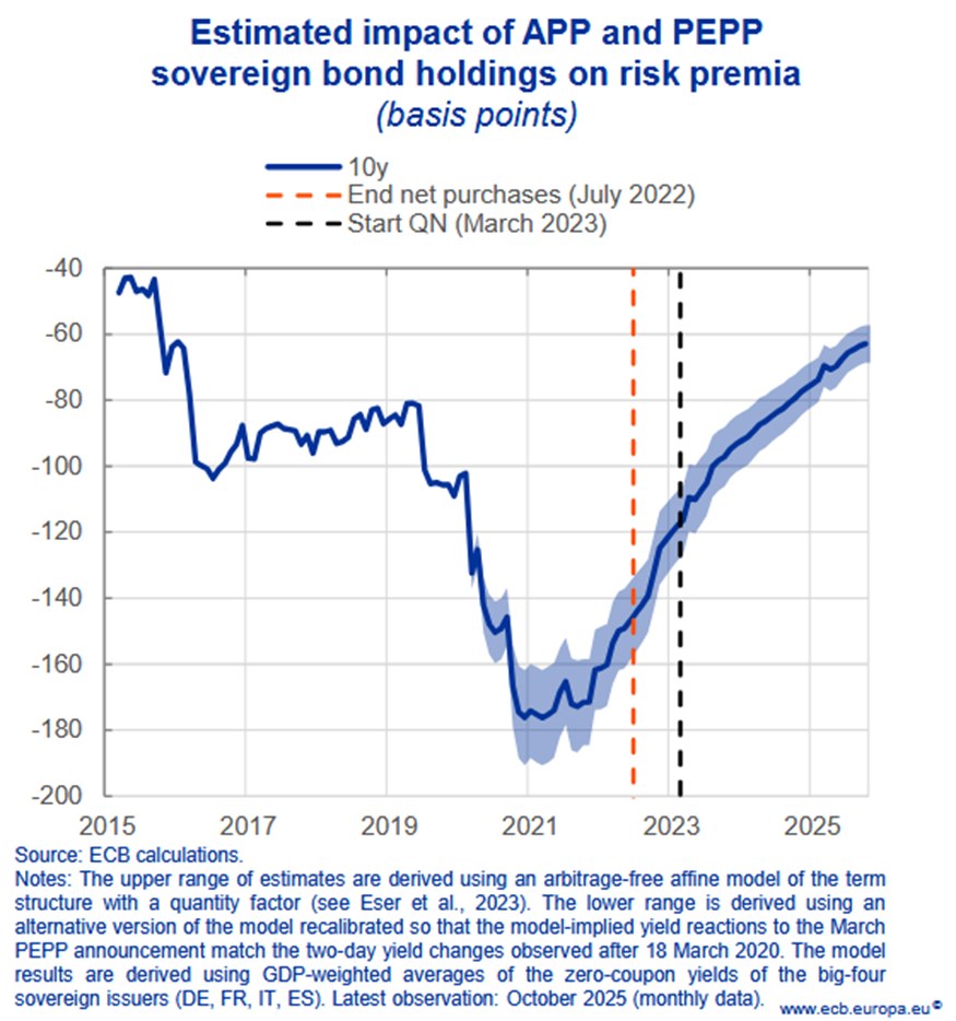 Nachdem sich die Marktzinsen beständig "robust" zeigen, findet wie angekündigt aktuell eine breiter angelegte "Anpassungswelle" bei den Fixzinskonditionen statt (beim einen mehr, beim anderen weniger ausgeprägt - auch unterschiedlich je nach Fixzinssegment). interessant im Zusammenhang mit dem immer noch hohen Liquiditätsstand im EUR-System ist, dass ohne die stark präsenten EZB-Ankaufsprogramme die Staatsanleiherenditen (gemessen an den 10Y Renditen der in der EUR-Zone größten Emittenten) faktisch nochmal um etwa 60 BP höher wären. |
