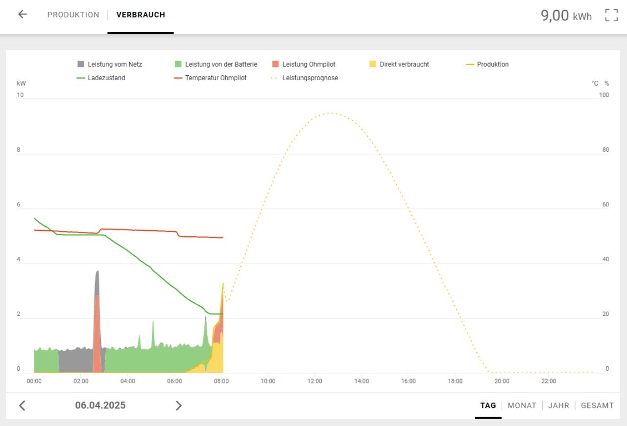 Ich bin mit der neuen Funktion ECA Positiv überrascht. Besonders in der Verwendung mit Wärmepumpe und E-Auto hab ich befürchtet, dass eine zu starre Regelung das Gegenteil dessen bringt, was beabsichtigt ist. Hier mal mein Bild vom selben Tag. Er hat in der Früh wenigstens den Speicher reserviert, während das E-Auto geladen wurde. |