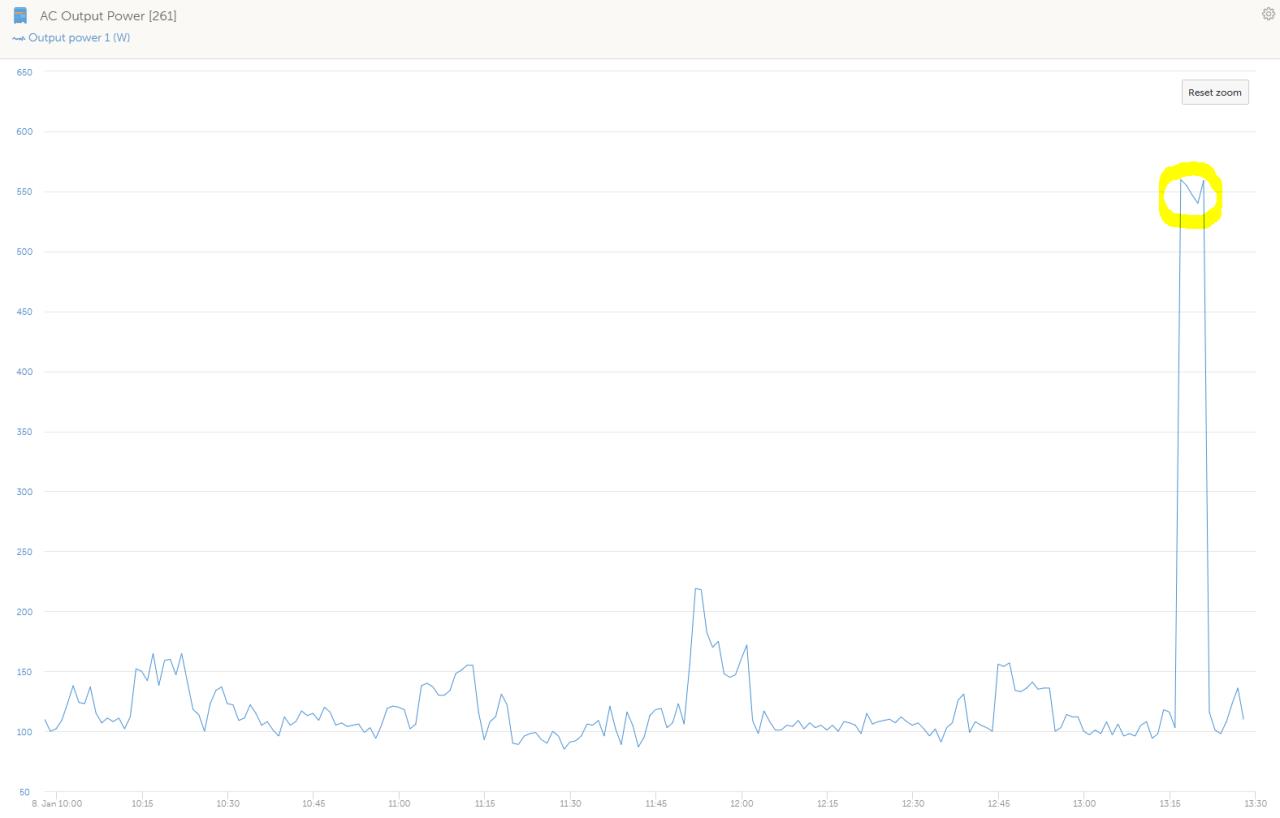 Dann ist bei mir etwas anderes eingebaut oder deine Heizung tatsächlich defekt. Ich hab jetzt auch eben den Handbetrieb für die Kondensatheizung aktiviert und der Peak in der Abbildung ist der Test. Etwa 400W dürfte die Heizung haben... |