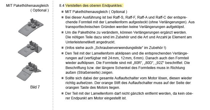 Ich habe mir jetzt mal alle Anleitungen von Schlotterer durchgeschaut, ich weiß leider nicht genau welchen Motor wir haben. Aber ich bin fündig geworden, dieses Zapferl nennt sich der Auslaufpilz und das was dort raufgesteckt wird nennt sich Pakethöhenausgleich. Ist für das verstellen des oberen Endpunktes. Ich weiß jetzt zwar was es ist, aber schlauer bin ich trotzdem noch nicht 😄 |
