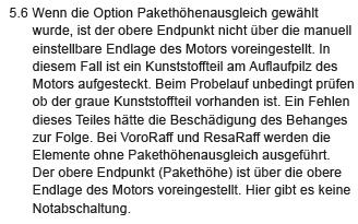 Hi Ich habe ja das selbe Problem und die Firma Schlotterer hat sich innerhalb von 2 Tagen bei mir gemeldet und ich habe auch schon einen Termin. Aber so wie ich es verstanden habe wird der eingestellte Endpunkt verwendet und der Auflaufpilz ist eher ein Backup damit er beim überfahren des Endpunkte nicht defekt wird. Naja ich kann nach den Termin Anfang April mehr sagen. |