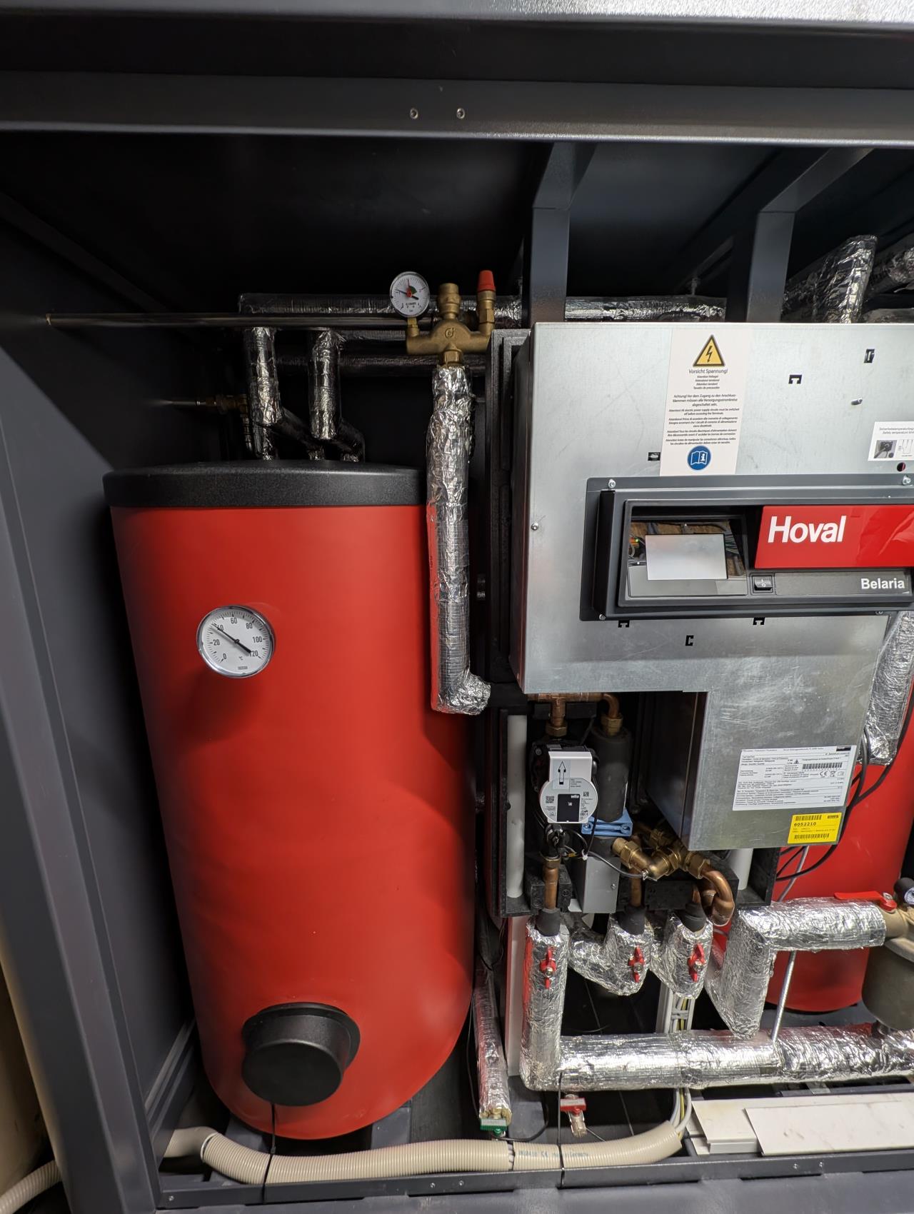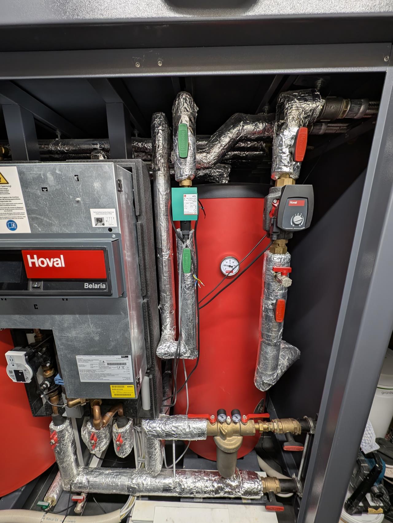 Kurz zur Erklärung: Das ist ein "Smartcube" einer örtlichen Firma, wo alles schon fertig angeschlossen mit dem Kran ins Haus gehoben wurde. Die Jungs sind prinzipiell recht engagiert, kennen die Hoval-Parameter aber auch nicht und machen vieles wahrscheinlich so, wie HB es halt so machen. Übersicht links WW WW [Warmwasser] rechts Heizungs-Puffer links oben rechts oben rechts unten Mitte unten Ich hoffe, ihr könnt was damit anfangen und sag auf jeden Fall schon mal Danke für eure Hilfe! P.S.: ich hab mal die Thermometer getauscht. Haben nicht wirklich am anderen Puffer gepasst, aber das WW WW [Warmwasser]-Thermometer hat am Heizungspuffer tatsächlich deutlich mehr angezeigt. Kann also sein, dass der Puffer doch mitläuft und einfach das eigentliche Thermometer nicht richtig anliegt. |