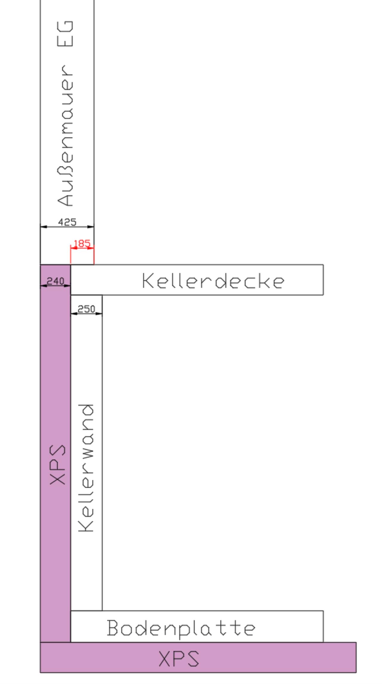Aktuell im Rohbau-Plan, 24cm XPS unter BoPla + Kellerwand.