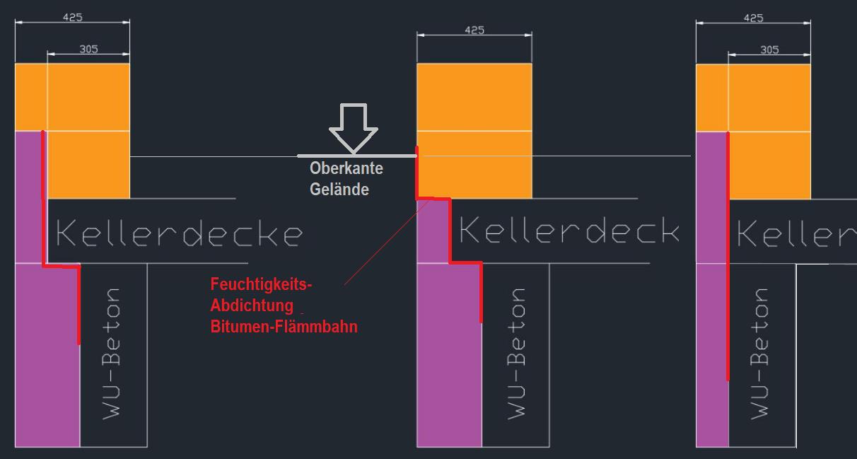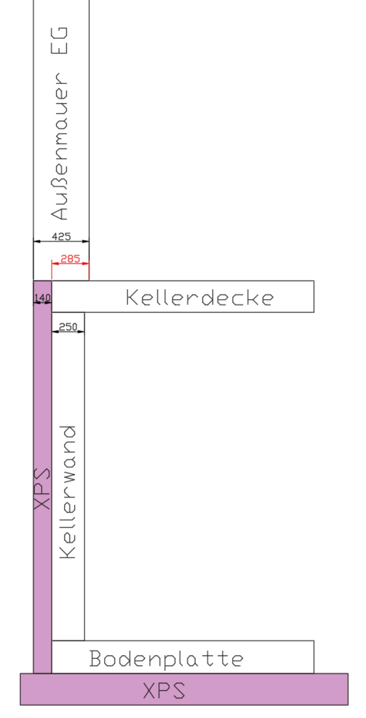 Wobei es in dem Wärmebrückenkatalog vom Wienerberger eher um die Temperaturabsenkung im Eck geht und die von einem Keller mit gut 3°C ausgehen. Randbedingungen, die wohl kaum vorliegen, selbst mein Keller (nur ca. 1m unter die Geländekante gedämmt) hat im Winter nie unter 13°C (im kältesten Eck). Aber ja Wärmebrücke trotzdem ...