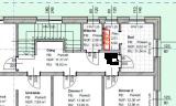 Ich würde mir überlegen diesen Spitz im Wohnzimmer wirklich so zu machen. Kann durchaus "was besonderes sein" ABER hat auch viele Nachteile. - Der gewonnene Platz dadurch hält sich in Grenzen. Im wesentlichen gewinnst du dadurch nur etwas mehr leere Fläche im Wohnraum welcher mit 56m² eh riesig ist. Wir haben auch um die 55m² im Wohnraum - eigentlich viel leerer Platz. Nur aktuell mit dem 8 Monate alten Sohn ists super weils als riesige Spielfläche dient. In ein paar Jahren ist es wirklich "leer" - Dadurch hast du erheblich größere Fläche an Flachdach welches durch bewohnten Raum darunter relativ teuer ist. Glaub mir ich weiß von was ich spreche: Stand heute würde ich kein Flachdach mehr über Wohnraum machen weils vom Design her "cool" ausschaut. Die Dämmung ist wesentlich teurer als wenns einfach eine Betonplatte im Gefälle betoniert ist. Die Mehrkosten dadurch sind nicht zu unterschätzen. Zu den Kosten: Du brauchst mehr Ziegel, mehr Beton in der Decke, Anschlüsse an die Betondecke via ISO Körbe, das Flachdach muss geflämmt, gedämmt werden (Bauder PIR Dämmung extrem teuer z.B.), Folie darauf, bekiest, eventuelle Attika mit Verblechung. Da sprechen wir schnell mal von ~10-15k€ Mehrkosten. Wenn du die Wand einfach gerade ziehst und eine große Hebeschiebetür machst siehts nicht schlechter aus und spart einiges an Geld. Ich glaube auch persönlich, dass der Technikraum unter der Stiege "herausfordernd" wird. Alleine wenn du dir mal anschaust was man da so an Technik unterbringen muss. Unser Technikraum im EG hat 5,7m² und ist "rammelvoll": Großer E-Schrank der zugänglich sein soll, PV Wechselrichter, Wärmepumpe mit Warmwasserspeicher inkludiert (so groß wie ein großer Kühlschrank), Entkalkungsanlage, Wasseruhr, diverse Ausgleichsbehälter und Verohrungen für FBH FBH [Fußbodenheizung], Wasser. Netzwerktechnik und Schrank, Glasfaseranschluss, vielleicht ein kleines Regal für Dinge die man oft braucht aber nicht herumstehen sollen. Und da hab ich noch nichtmal einen PV Speicher der auch schnell mal so hoch wie ein Kühlschrank werden kann. Du verlierst durch die Schräge der Stiege einiges an brauchbaren Platz. Überleg dir das also gut. Das Argument mit Bad im EG kann ich verstehen - haben wir auch so gemacht. Bis dato war da in 3 Jahren vielleicht 5 mal wer in der Dusche - Haben da aber eine bodenebene 150x90er Dusche. Wie bereits gesagt die 90x90 Dusche mit Kabine kannst du im Alter oder wenn du im Rollstuhl sitzt vergessen... Würd ich nochmal bauen würd ich die Dusche im EG auch weglassen. Da reicht ein WC mit Waschbecken. Bezüglich "altersgerecht" würd ich die Türen auch auf 90cm breite erweitern. Mehrkosten minimal und dann kommt man mit Möbel, Rollstuhl etc. einfach leichter durch. Vielleicht würd ich im nächsten Haus sogar 100er Türen machen. Mach die Türen auch 210cm hoch. Die Türhersteller verlangen bis 210cm den gleichen Preis. d.h. die 10cm bekommst du gratis. Wir haben den Fehler mit 200cm gemacht und heutzutage werden die Leute immer größer, bin selbst 1,92m. Habe Bekannte die müssen sich mit 2,04cm leider "ducken" Die Kinderzimmer mit 12m² finde ich relativ klein. Mir sind unsere 15,5m² jetzt wo es eingerichtet ist und das Kind darin spielt "zu klein". Kann mir kaum vorstellen wie das mal im Teenageralter sein wird. Den Tausch von WC und Wäscheraum im OG find ich gut. Unser Raumkonzept im OG ist 1:1 gleich. Überleg dir den Wäscheraum via Badezimmer (mit Schiebetür) zugänglich zu machen. Wir habens genau gleich gemacht, Wäscheraum ist ein seperater Raum im OG zugänglich via Gang und grenz ans Badezimmer. Nachträglich wäre ein Zugang via Badezimmer unsere favorisierte Lösung. Dann kannst dir einen schönen Kasten-Verbau machen wo die Waschmaschine und Trockner erhöht stehen. In so einem kleinen Raum mit Tür schwieriger als wenn du die breitere Seite vom Badezimmer aus nutzt. Hier eine Skizze wie ich es meine: Rot ein Kasten-Verbau mit der Waschmaschine und Trockner, der Raum wird übers Bad begangen. Im Kasten kann dann z.B. auch ein Schmutzwäschefach sein. Raus aus dem Gewand, Schmutzwäsche dort rein und unter die Dusche. |