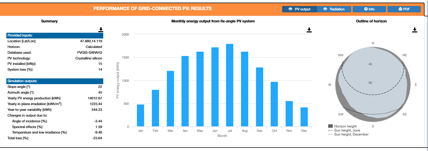 Danke für die Info, kannte PVGIS nicht. Dach hat 22° und steht ca 45 Grad zu Süden. Kann als Laie aus den Daten aber nichts besonderes herauslesen. Wie ist das gemeint mit Strom abgeben? Wenn ich nicht einspeisen darf, kann ich auch nicht an die Eltern in 50m Entfernung abgeben, oder sehe ich das falsch? |