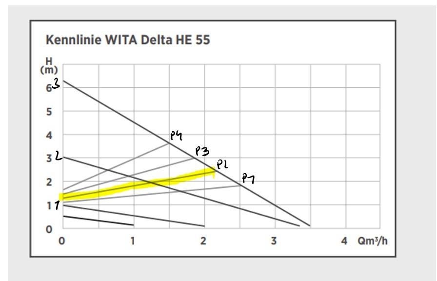 1.Ich verstehe das Diagramm der Pumpe nicht, wie viel L fördert die derzeit pro Minute. Warum ist die Kurve bei den P Linien steigend?