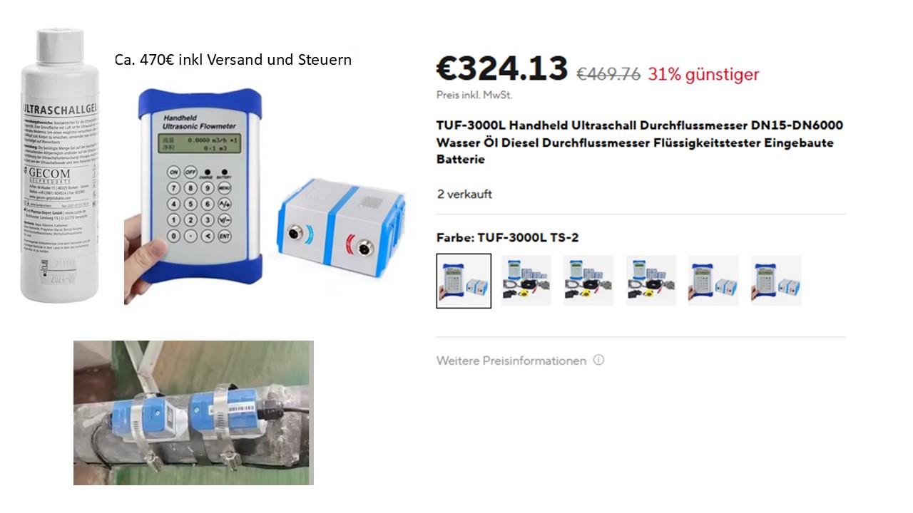 Und wenn du ca. 470€ ausgibst, brauchst gar nix machen und misst den Durchfluß sehr genau. Voraussetzung ist, ein gerades Rohrstück (Rohrleitung) mit ca. 25cm Länge.