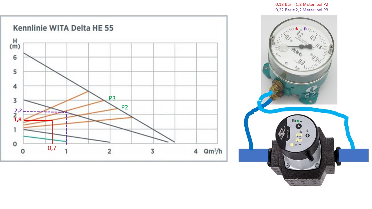 Schade finde ich, dass der Differenzdruck, bzw. die Durchflußmenge bei den meisten Pumpen  nicht in einem Display angezeigt werden. Die Grundfos Alpha 3 zeigt die Durchflußmenge an.