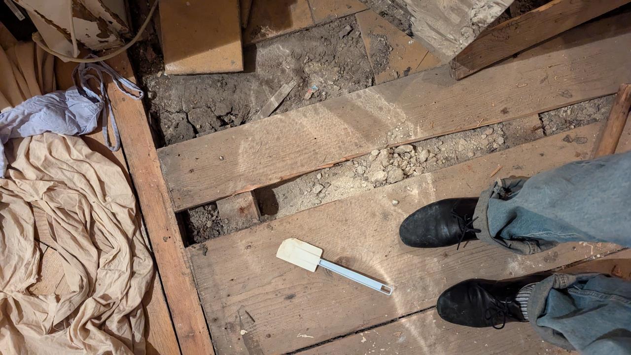 Muss all der Schutt/ die Aufschüttung raus? Alle Holzdielen? Muss ich auf den Estrich runter, ausbessern, 1mal nivelliermasse, dämmplatten und nochmal nevellieren/ spachteln?