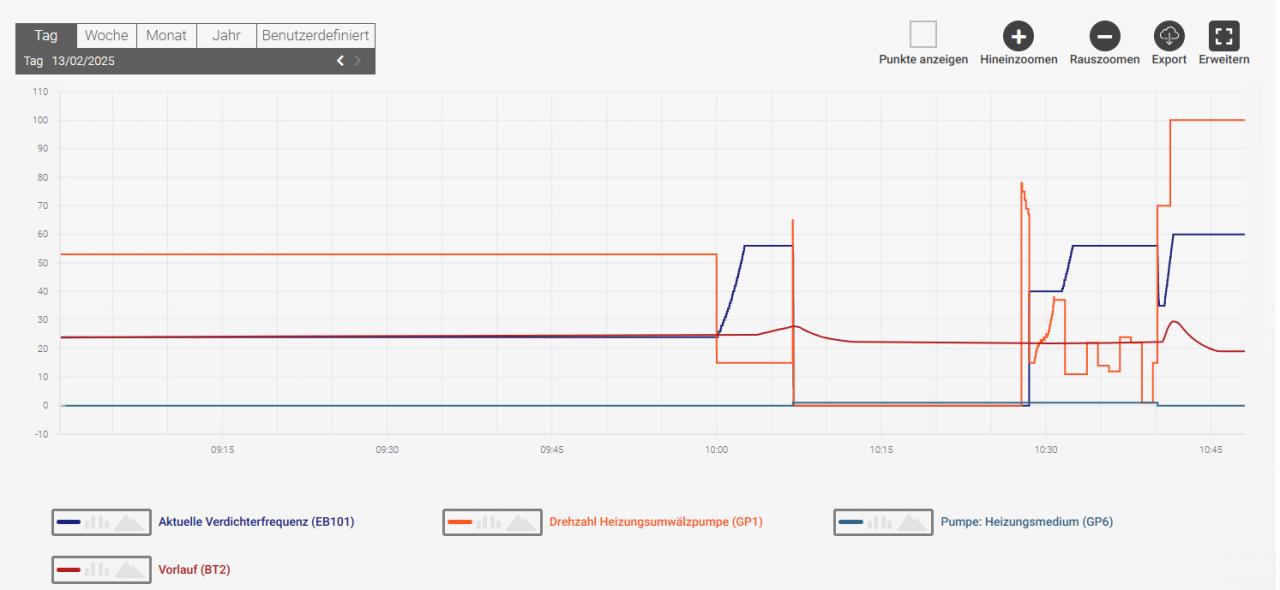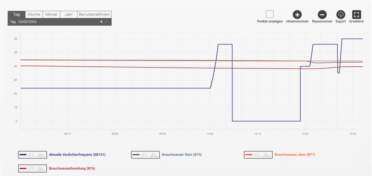 Beim letzten Mal, als der Verdichter aus dem Heizbetrieb einen Stop Richtung Warmwasser eingelegt hatte stand bei Status "Vorwärmen Verdichter". Ich werde selber nicht schlau draus.