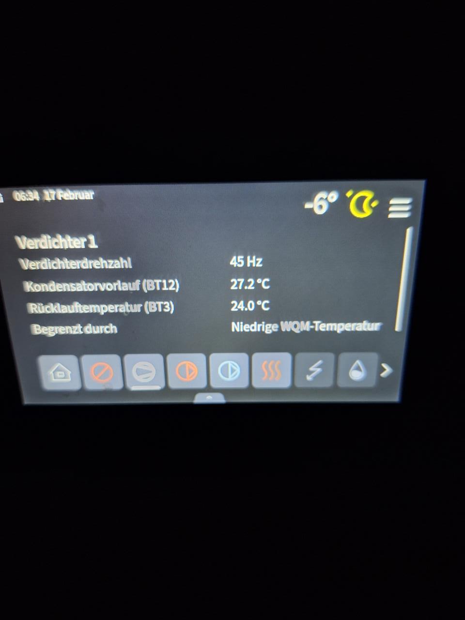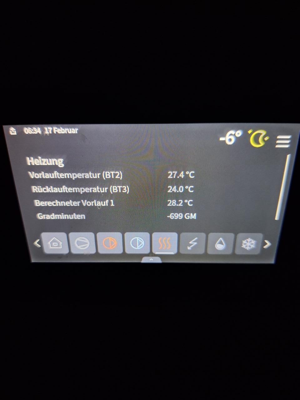 Hi Arne! Bin auch sehr zufrieden aber nochmals möchte ich das ganze nicht mehr machen. 😉 Keine Ahnung aber bis auch mich hat nur der KNV Inbetriebnahme Techniker etwas verändert. Aber auf -6°C war es war glaube ich noch nie gestellt nicht einmal beim aufheizen. Werde auf jeden Fall den Wert anpassen wenn ich wieder zu Hause bin. Danke an alle! |