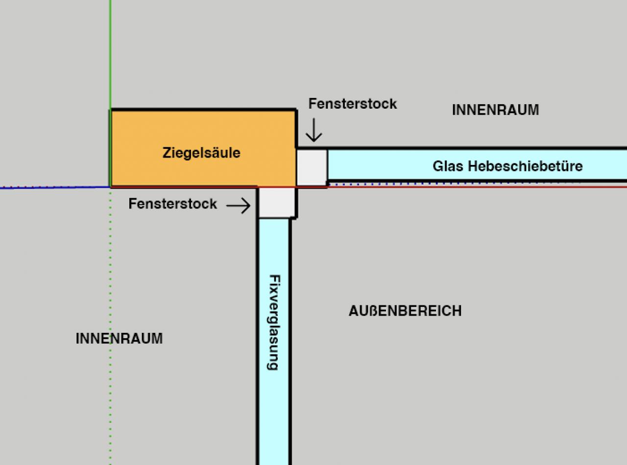 Fenster Eckdetail für Zubau