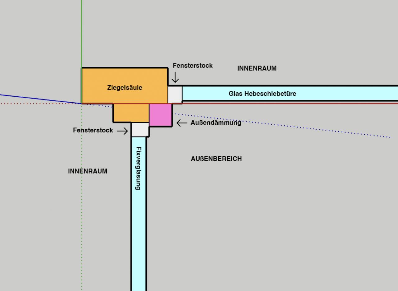 Danke für euere Antworten! Ich denke ihr habt Recht und V1 macht vermutlich mehr Sinn um die Ecke vernünftig gedämmt zu bekommen. Sonnenschutz außen ist nicht geplant d.h. das wäre kein Problem. Ja genau, beim Iststand wurde schon eine Dämmung vorgesehen aber noch nicht angebracht. |