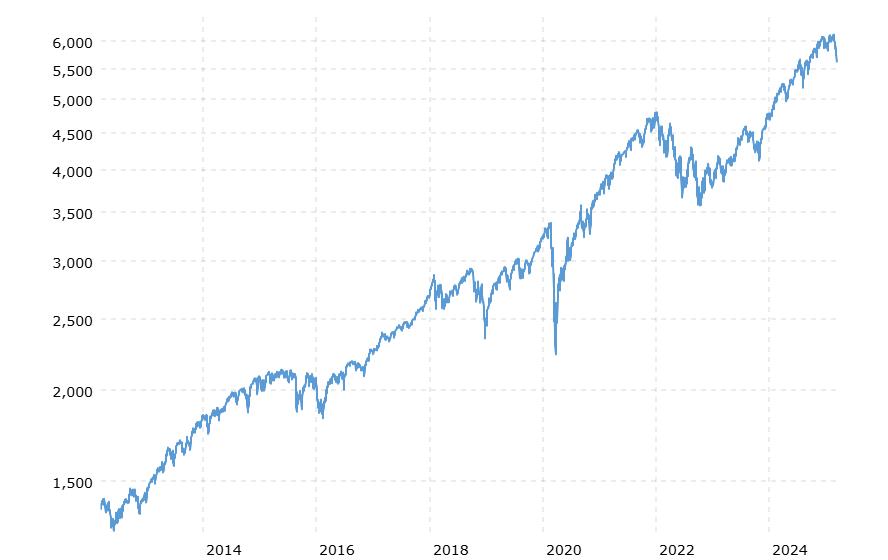 Zur historischen Einordnung der aktuelle "Einbruch" des S&P 500. Quelle: https://www.macrotrends.net/2324/sp-500-historical-chart-data Zoomt man auf die letzten 10 Jahre sieht man den "Rückgang" zumindest: Quelle: https://www.macrotrends.net/2324/sp-500-historical-chart-data
