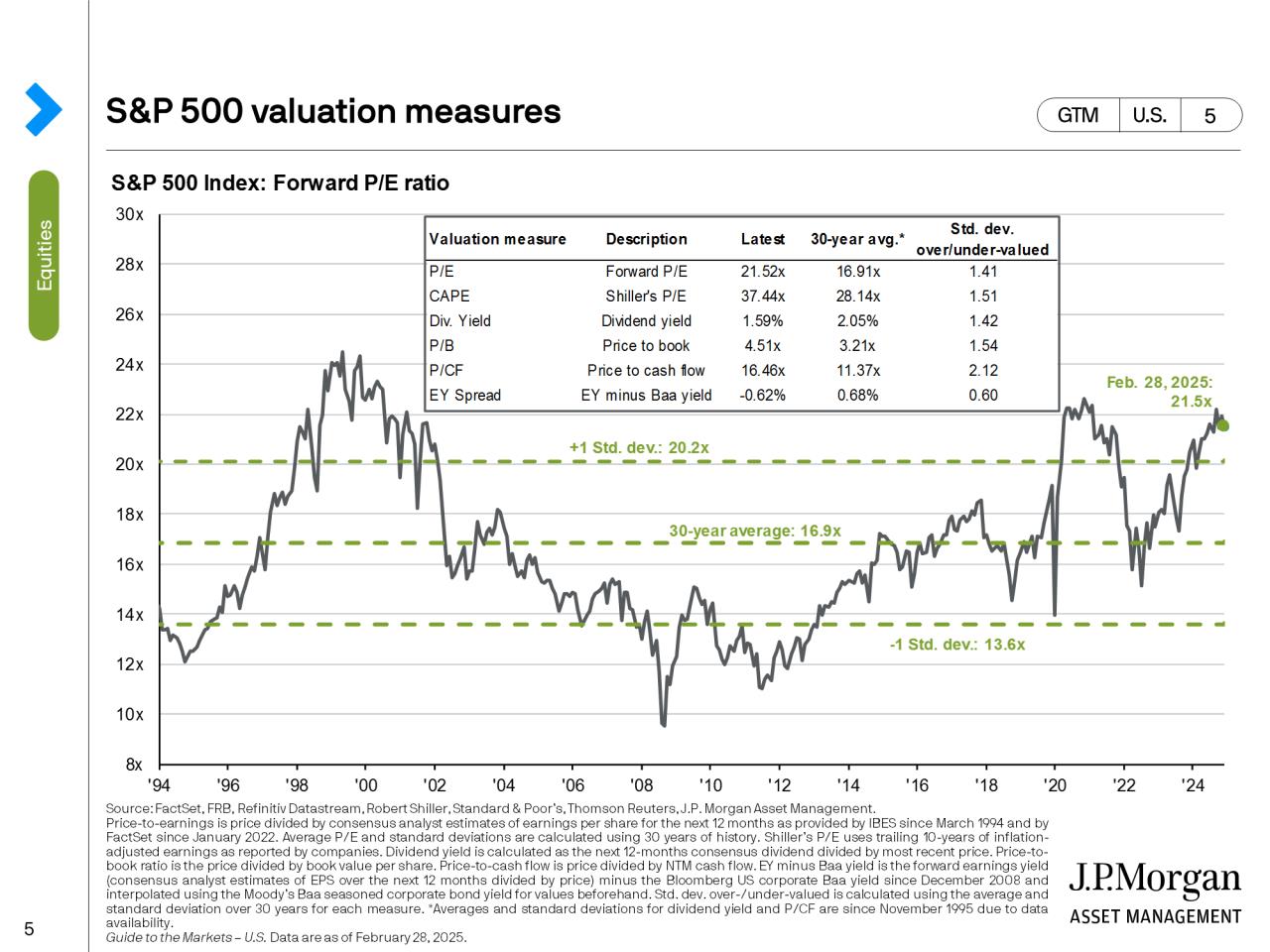 Ich finde die vierteljährlich erscheinenden Marktberichte von JP Morgan super. Hier die US Variante: https://am.jpmorgan.com/us/en/asset-management/adv/insights/market-insights/guide-to-the-markets/ Hier die deutsche Variante: https://am.jpmorgan.com/de/de/asset-management/adv/insights/market-insights/guide-to-the-markets/ Die nachstehenden 2 Slides geben gut Auskunft darüber wie der US Aktienmarkt bis vor kurzem bewertet war und ordnet es im historischen Kontext ein. Vielleicht hilft das dem ein oder anderen, die aktuellen Kursrückgänge besser einzuordnen. |