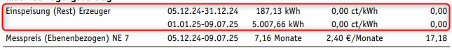Einspeisung (Rest) Erzeuger  mit noch 0,00ct/kWh^^