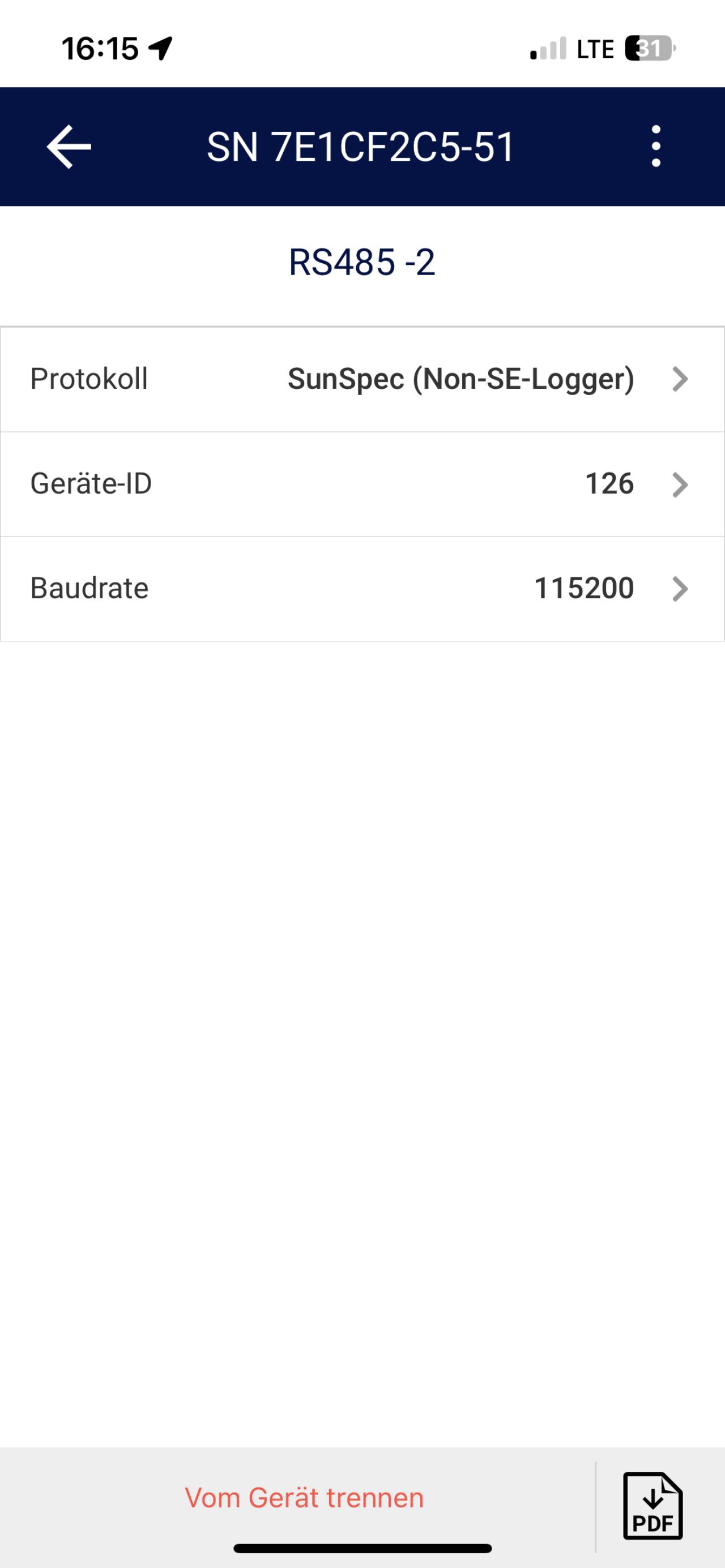 Bei mir sieht das derzeit im SE Wechselrichter so aus: