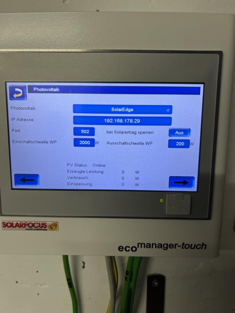 ich hab hier eine Solarfocus VampAir Wärmepumpe mit dem Energy Manager Eco und einen Solaredge Wechselrichter mit Stromzähler.