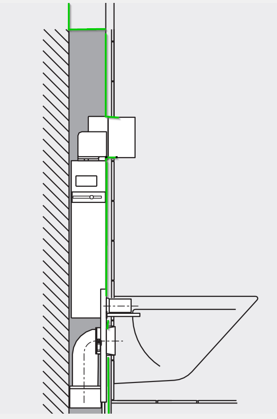 bei uns auch... das mit dem Spachteln hatte ich damals leider nicht auf dem Schirm (würde ich heute natürlich vorab machen) der Spülkasten an sich ist eingeputzt... damit sollte das ganze konstrukt luftdicht sein: sicherlich nicht perfekt, aber sollte denk ich passen... (grün stellt hier den Schnitt/Innenputz da)..notfalls könnte ich die drei elemente noch innen mit Klebeband luftdicht verkleben... Aber erstmal gilt es rauszufinden, wo der Geruch her kommt... Dass es jetzt knapp 8 Jahre funktioniert hat und dann von einem Tag auf den anderen Tag der Geruch da ist, ist schon merkwürdig.... |