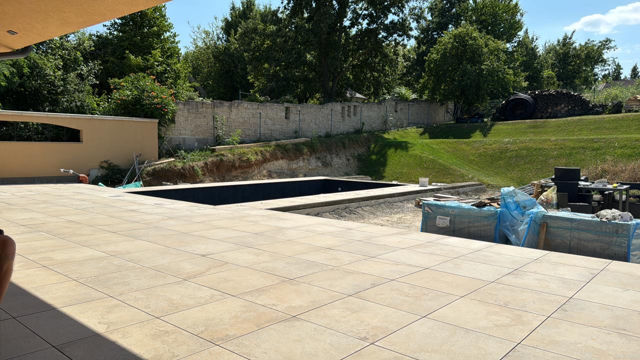 Hallo, definitiv betonierte Platte, drauf Drainagemörtel und Feinsteinzeug Fliesen. LG |