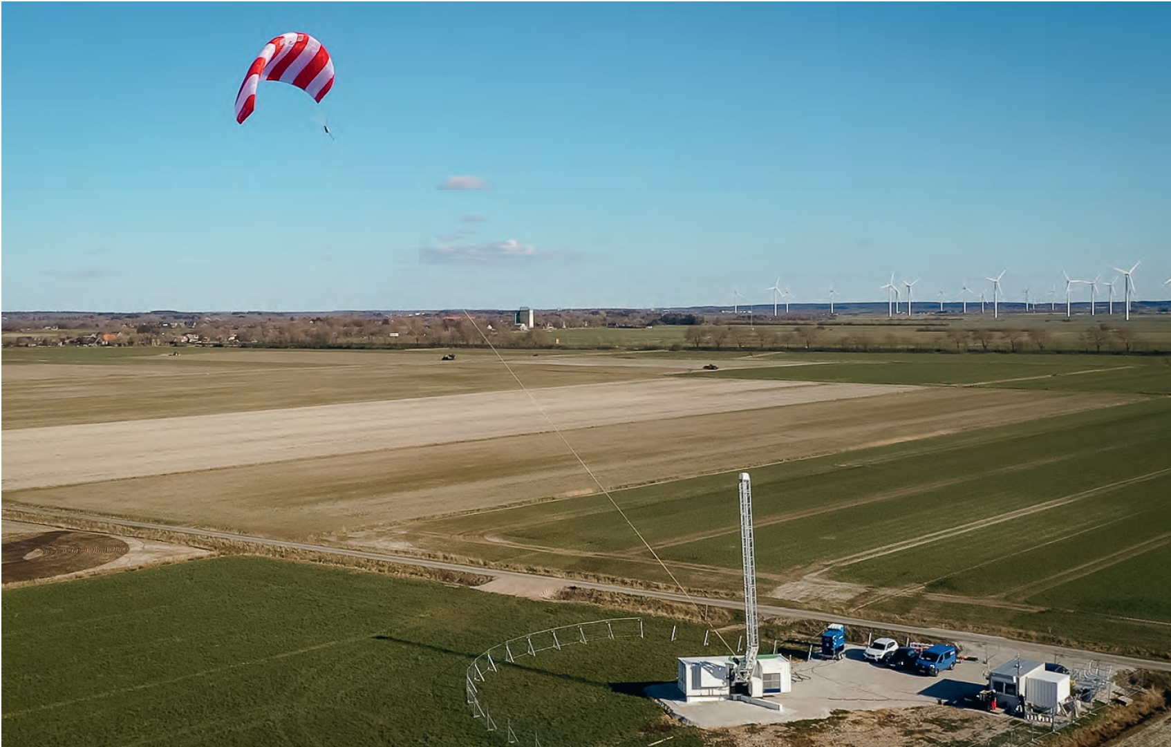 Bei 10km Seil und 45° kommst auf 7km Höhe, das wird die Flugaufsicht nicht wirklich wollen. Wenn an jedem EFH so ein Ding hängt und der Wind dreht ... |
