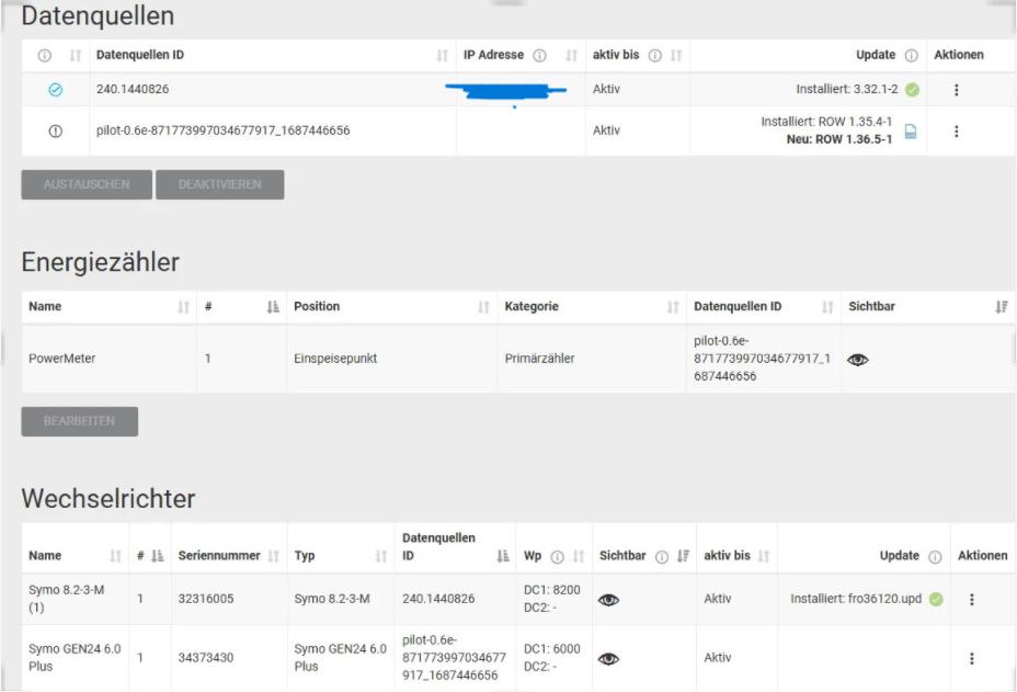 Weiters auffällig: Die 3 Stk Gen24, die sichtbar sind, laufen alle noch auf FW 1.28, die anderen 5 Stk Gen24 sind alle auf aktuellerer FW und nicht sichtbar