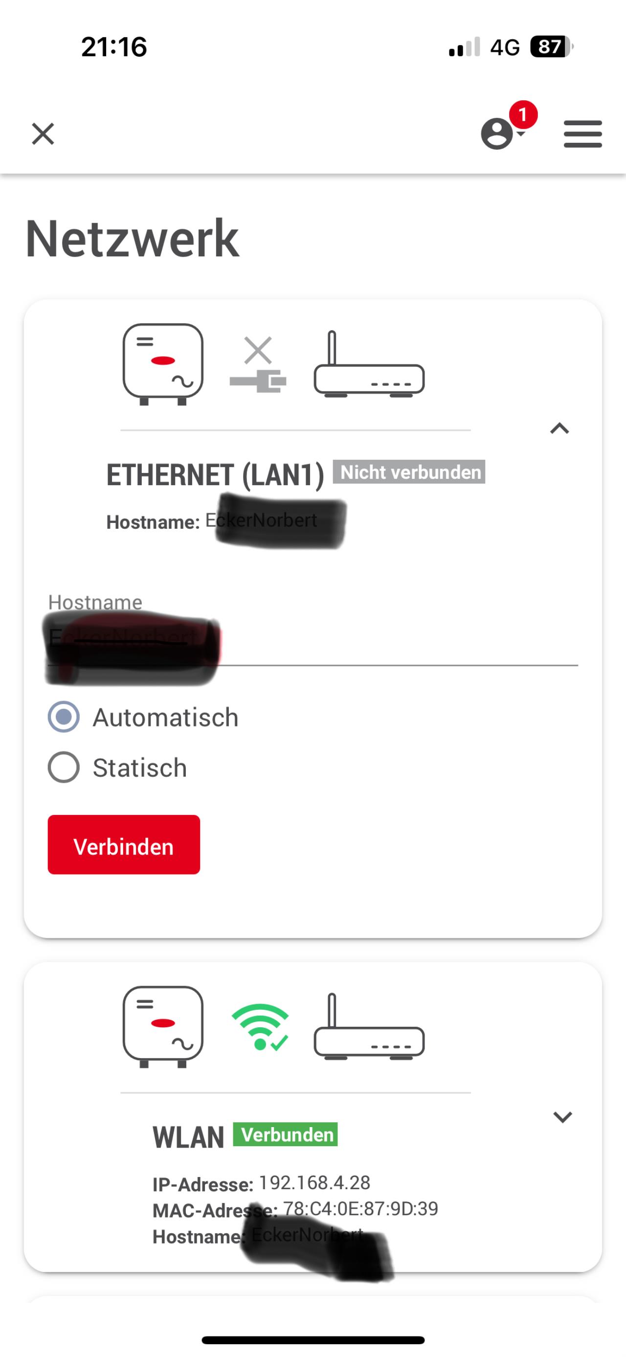 Momentan WLAN 🙃 Kabel wäre angeschlossen, muss mich mal mit der SolarStart App spielen und via Kabel einrichten... |