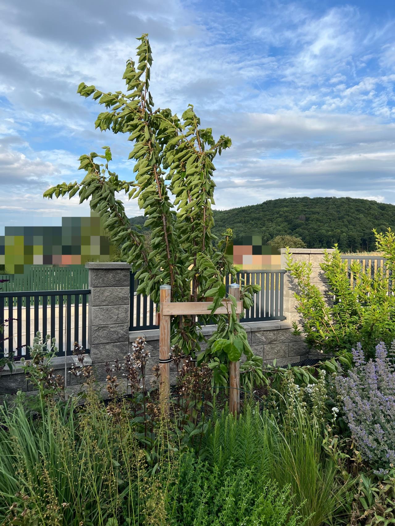 Wir haben im Herbst 2020 einen Kirschbaum (Große schwarze Knorpelkirsche als Buschbaum) gepflanzt. Der Baum hat sich in den Folgejahren im Unterschied zu den anderen zeitgleich gesetzten Obstbäumen gar nicht gut entwickelt: Es hat sich herausgestellt, dass der Boden in dem Bereich stark verdichtet ist und dem Baum zusätzlich noch Staunässe zu schaffen macht. Wir haben letztes Jahr im Frühling eine Bodenbelüftung (Druckluft plus Granulat) durchführen lassen und dem Baum geht es jetzt sehr viel besser und er schiebt richtig an. Und damit kommen wir zu meiner Frage: Ich weiß nicht ob oder wie ich ihn schneiden soll. Weiß jemand Rat?