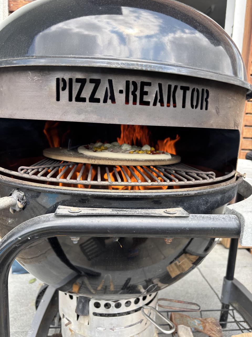 Hab auch den gleichen Grill und wenn der Deckel drauf ist bremst es ihn auch sehr stark ein. Grad gestern gegrillt - 1 voller Anzündkamin Holzkohle (keine Briketts) reichen für einen deckenden Haufen an einem Ende und eine etwas losere Seite mit weniger Hitze. Mit Briketts hab ich nie so eine richtige Hitze zusammengebracht. Solang der Deckel offen ist glühts wie verrückt, da ändert sich auch wenig dran wenn man ihn unten zu macht. Sobald der Deckel drauf ist (alles komplett offen) bremst es die Kohle doch sehr stark ein. Bin kein Grillexperte, aber die 4 Löchlein im Deckel wirken für mich etwas klein. Wenn dann der Pizzastein auch noch draufkommt ist es noch schlimmer. Ohne Deckel glüht die Kohle wie verrückt und wenn man die Pizza nach 1min rausholt ist die Glut gefühlt aus und man muss sie vor der nächsten Pizza wieder reanimieren. |